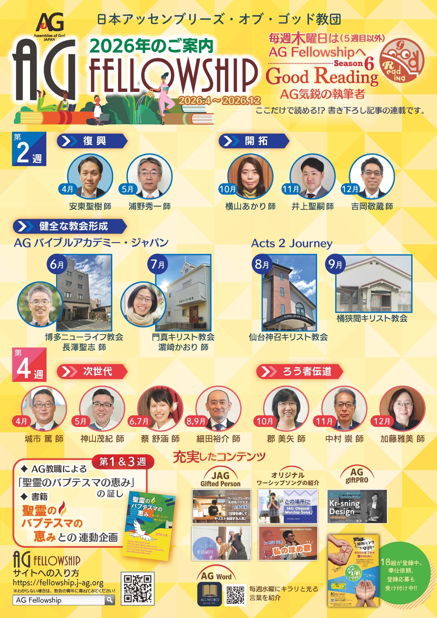 Good Reading Season6|4月より連載開始です。 毎週第2・4木曜日の午前7時、教団内各分野で活躍される先生方による、読み応えのある記事を掲載しています。 ぜひ楽しみに、読みください! サイト内には、Season1~Season5のアーカイブ記事もお読みいただけます。 ぜひお読みください! AG fellowship 最新記事 Follow me! FacebookXBlueskyHatenaCopy
