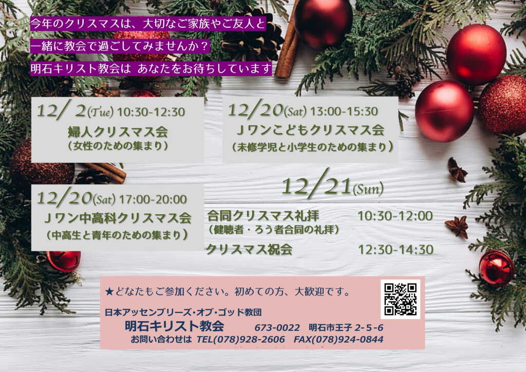 第2礼拝(どなたでも参加できます): 10:30~12:00